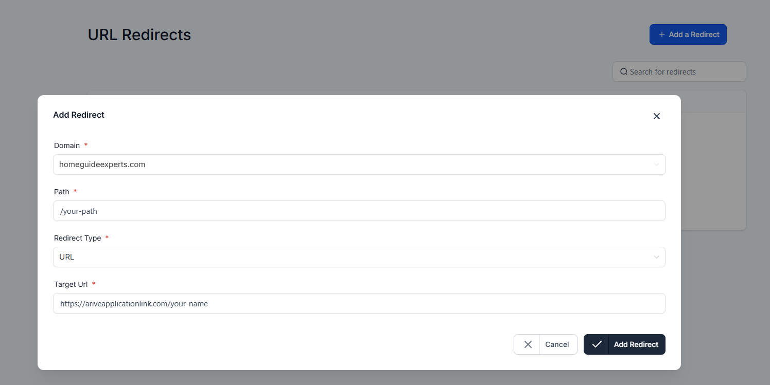 Add your application link to the Target URL (e.g., https://ariveapplicationlink.com/your-name)
