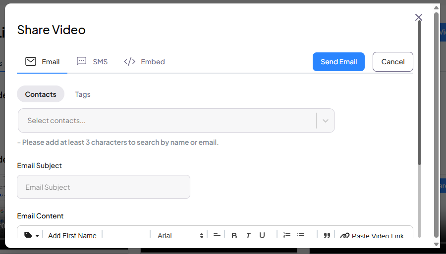 You can choose exactly who should receive your video—either by entering names manually or selecting from tags (like “past client” or “pre-approved”).