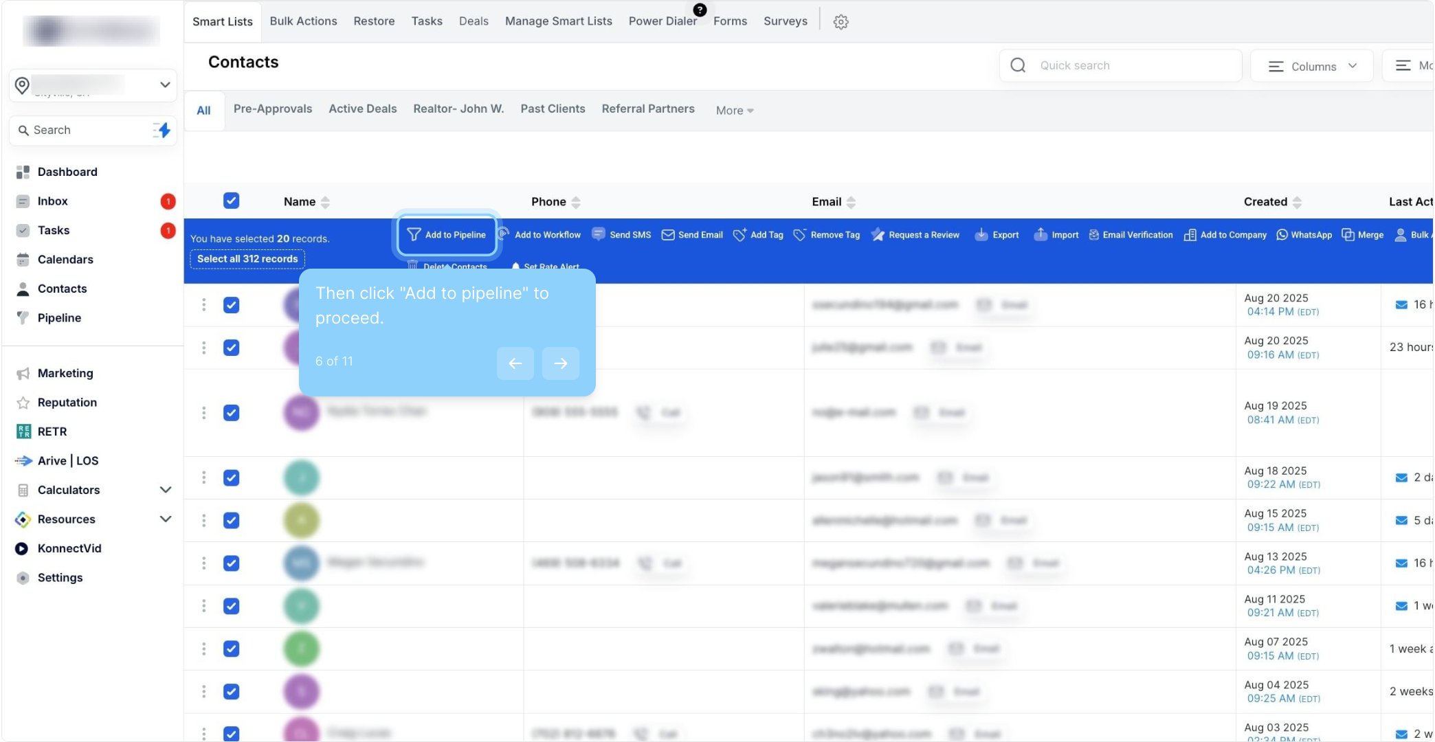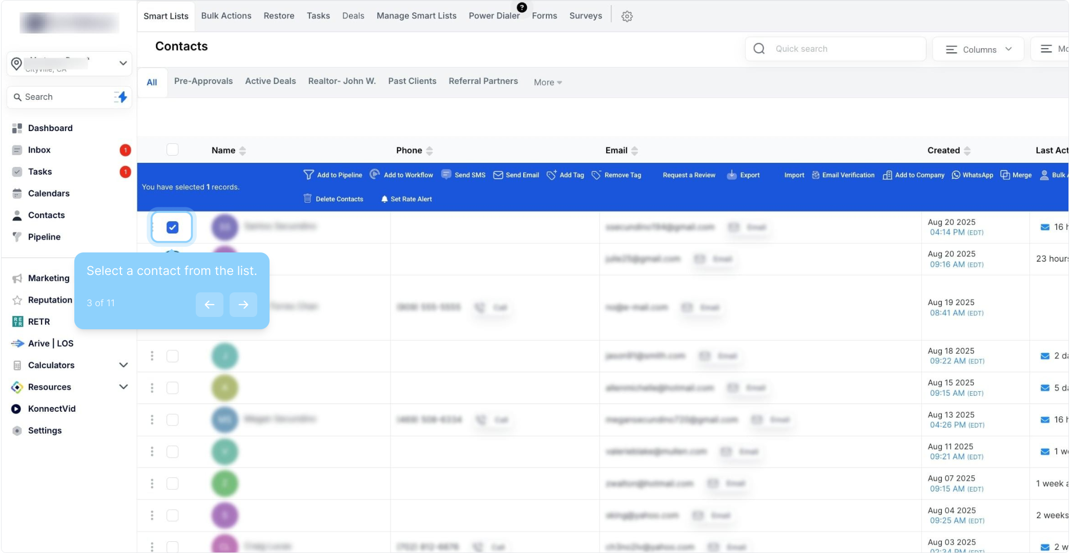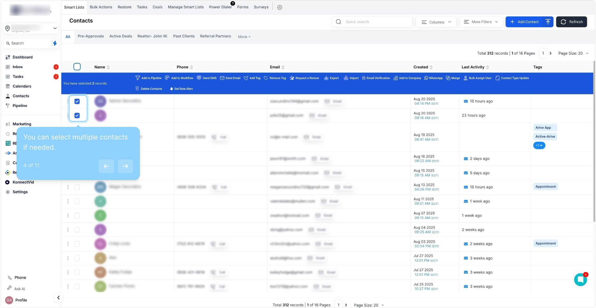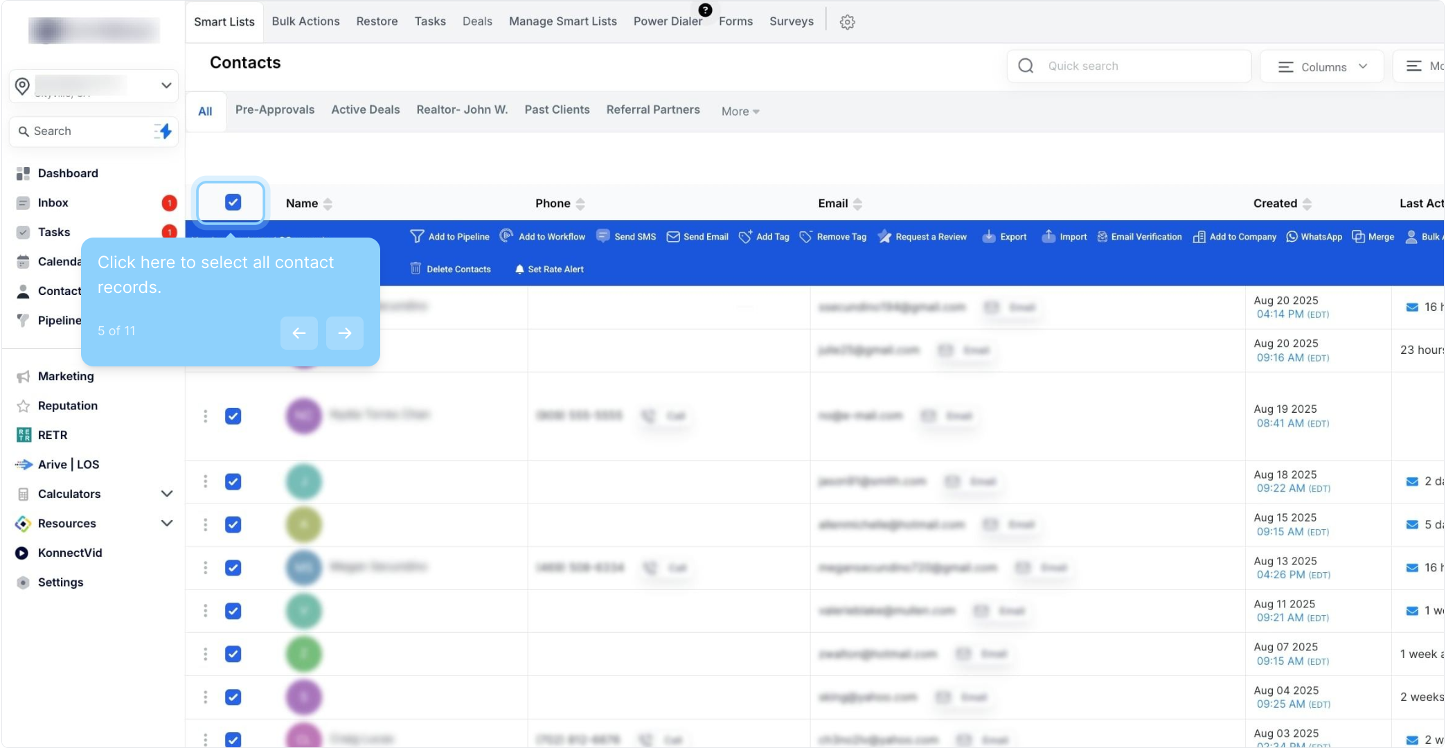 5. Click here to select all contact records.