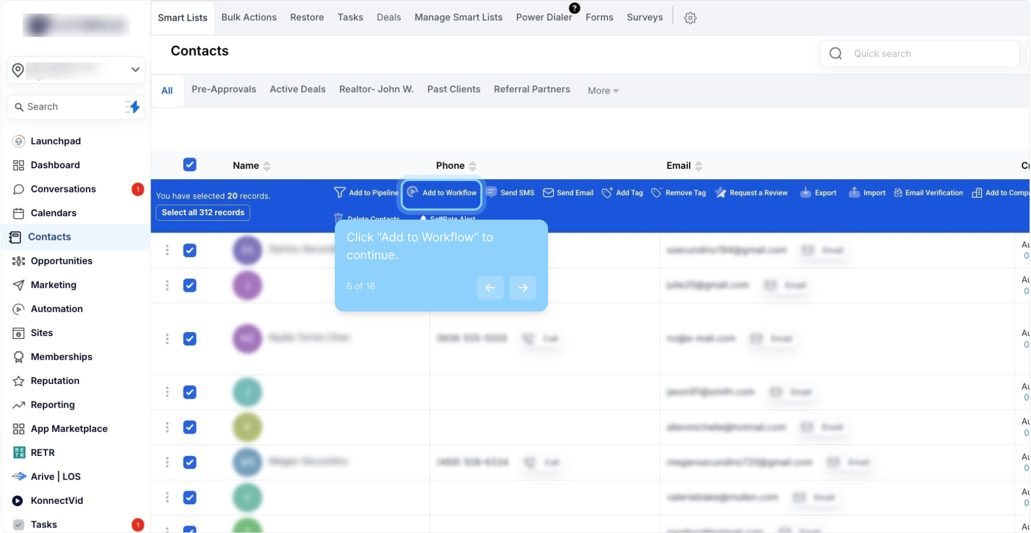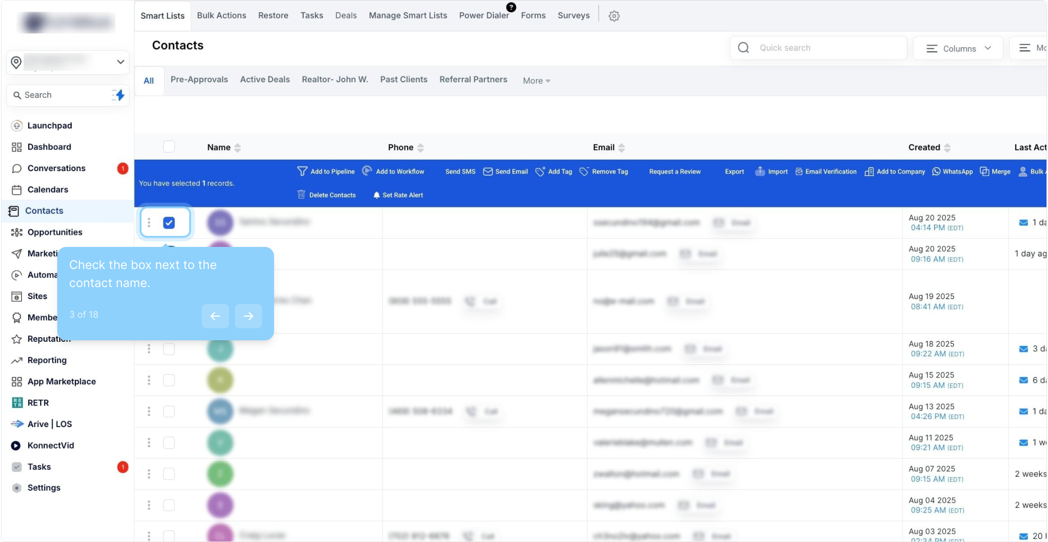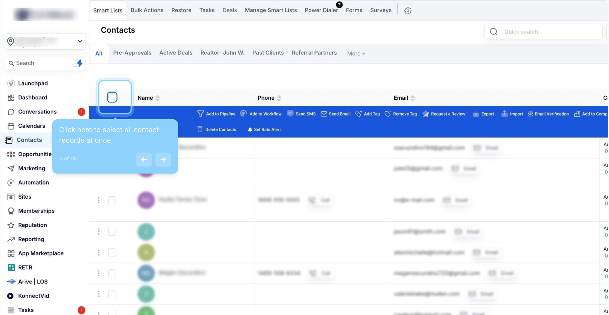 5. Click here to select all contact records at once.