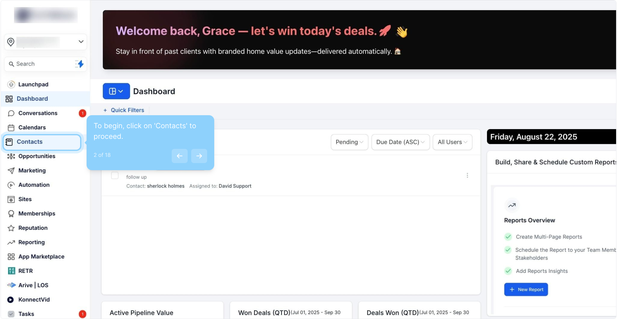 2. To begin, click on 'Contacts' to proceed.