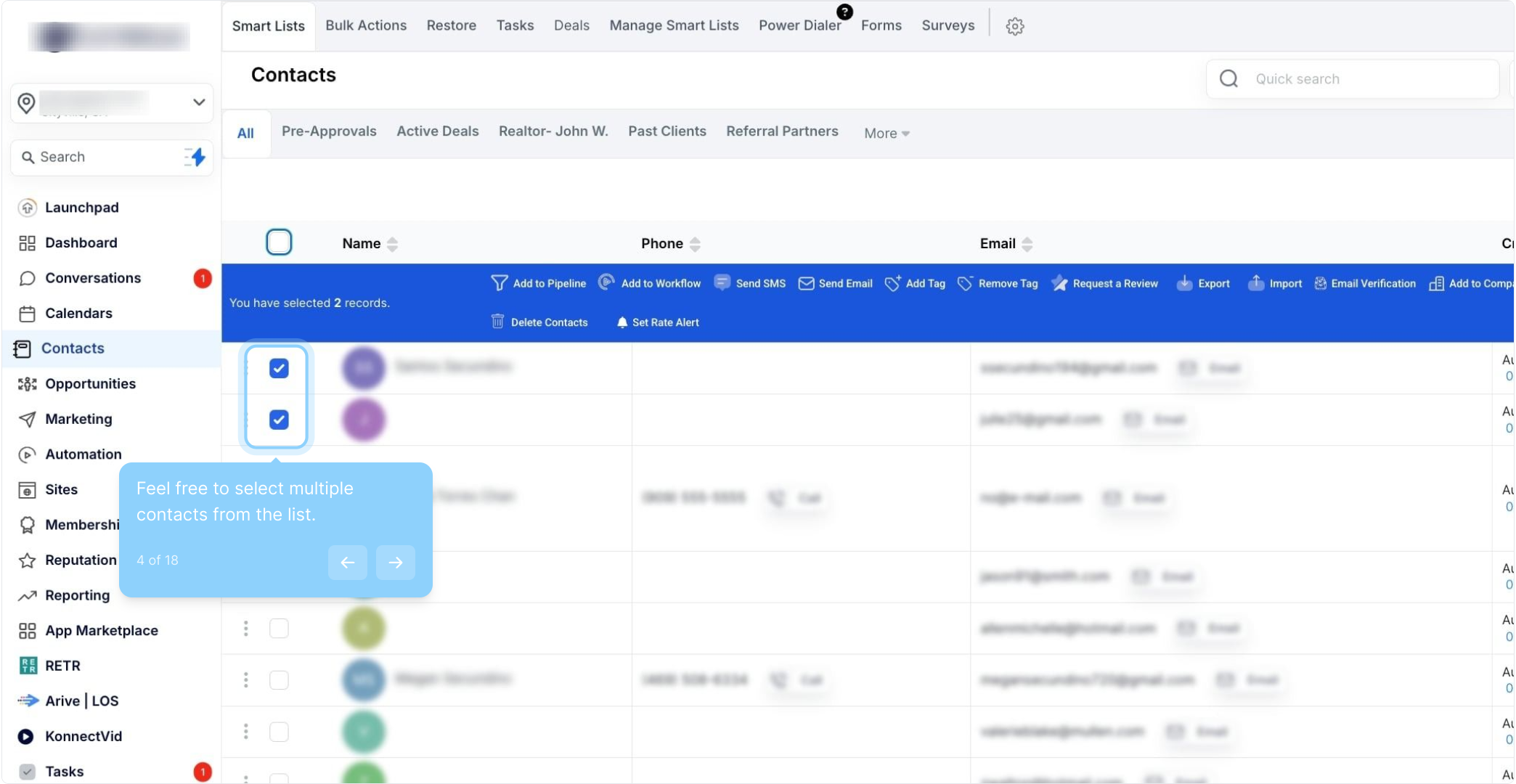 4. Feel free to select multiple contacts from the list.