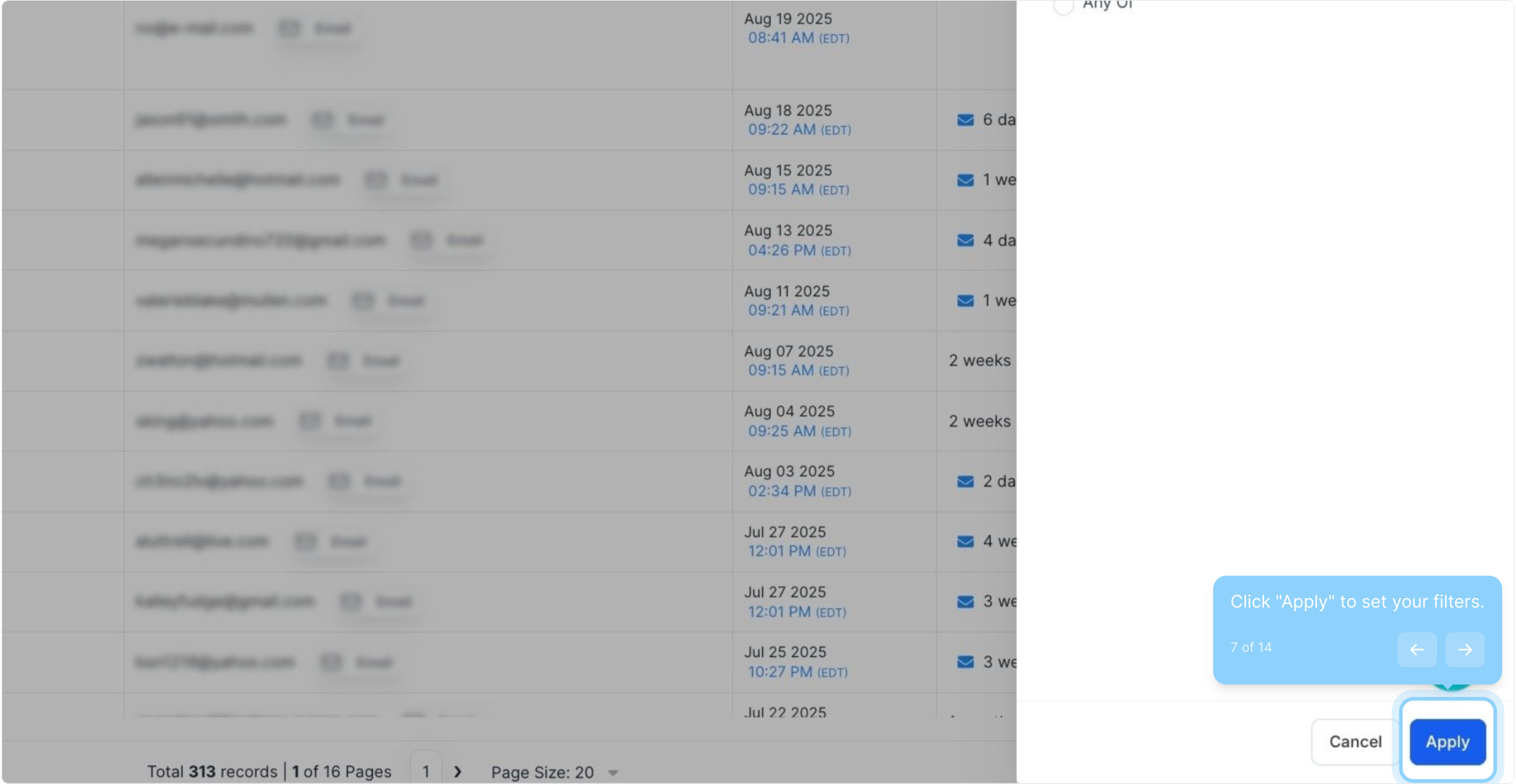 Valid Email Filter: Filter contacts based on the validation status of their email addresses.