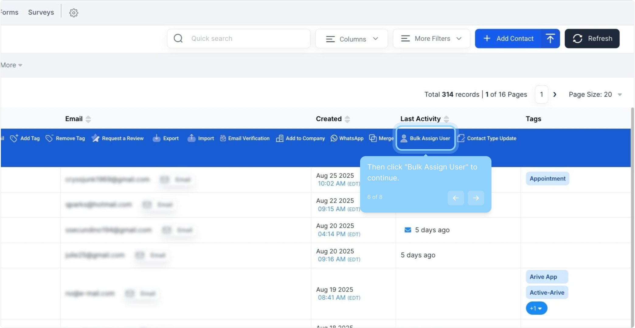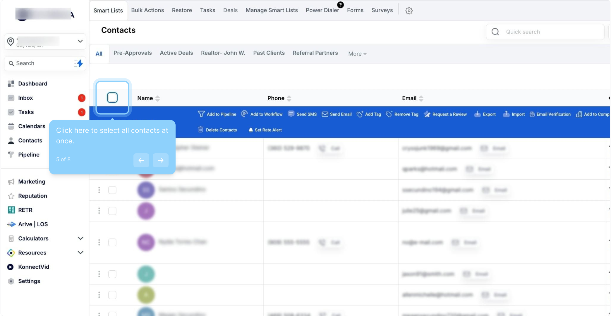 5. Click here to select all contacts at once.
