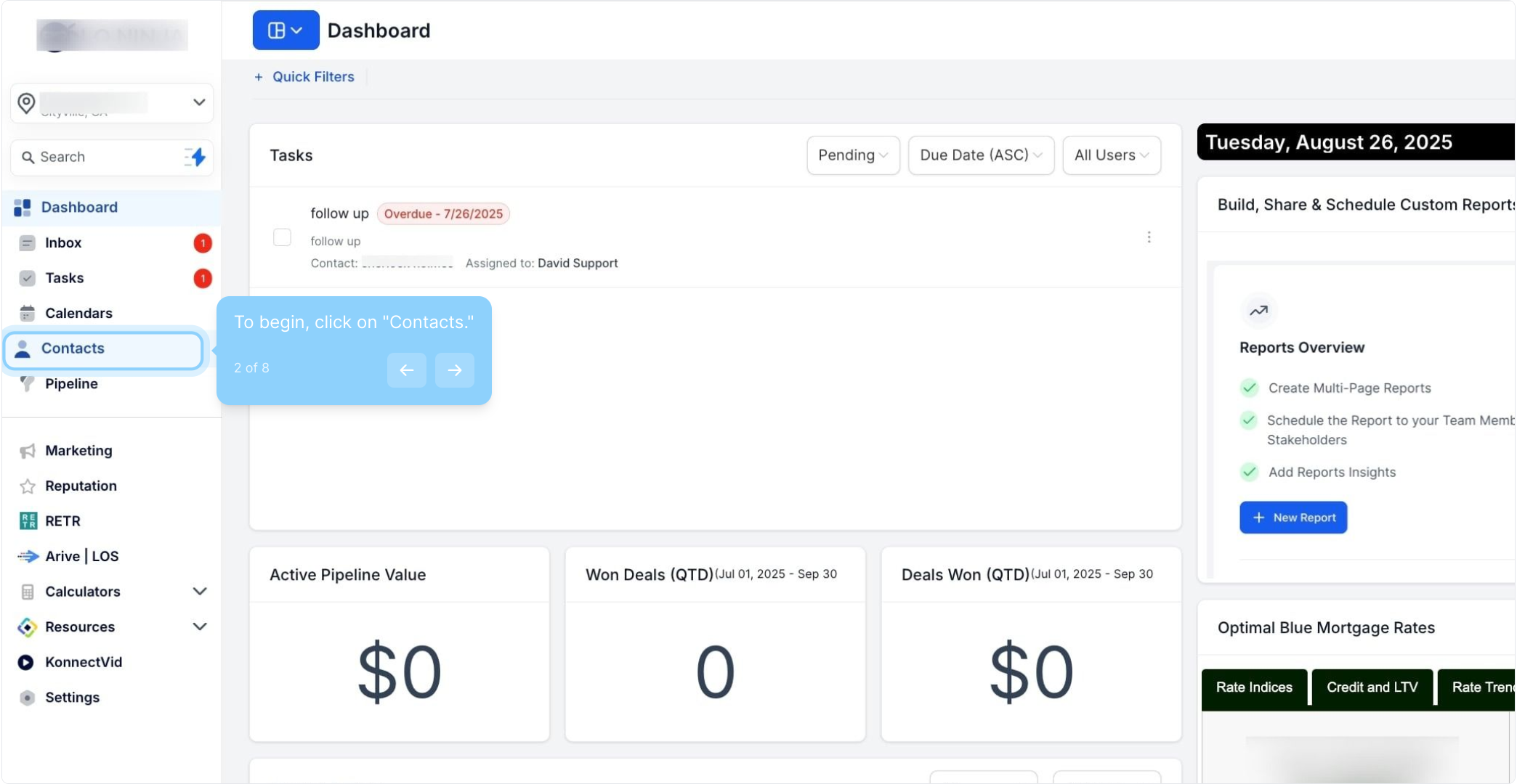 2. To begin, click on "Contacts."