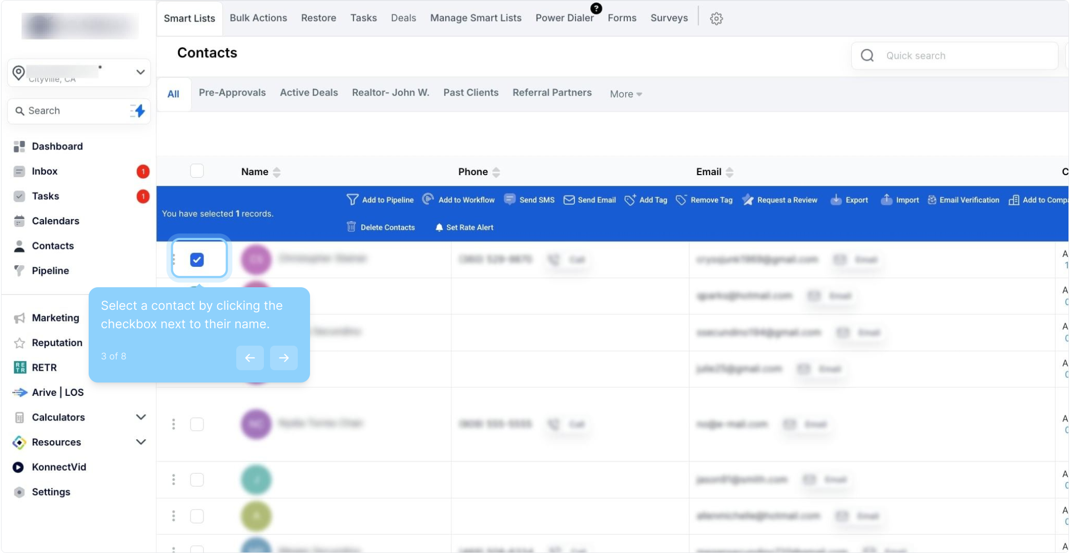 3. Select a contact by clicking the checkbox next to their name.