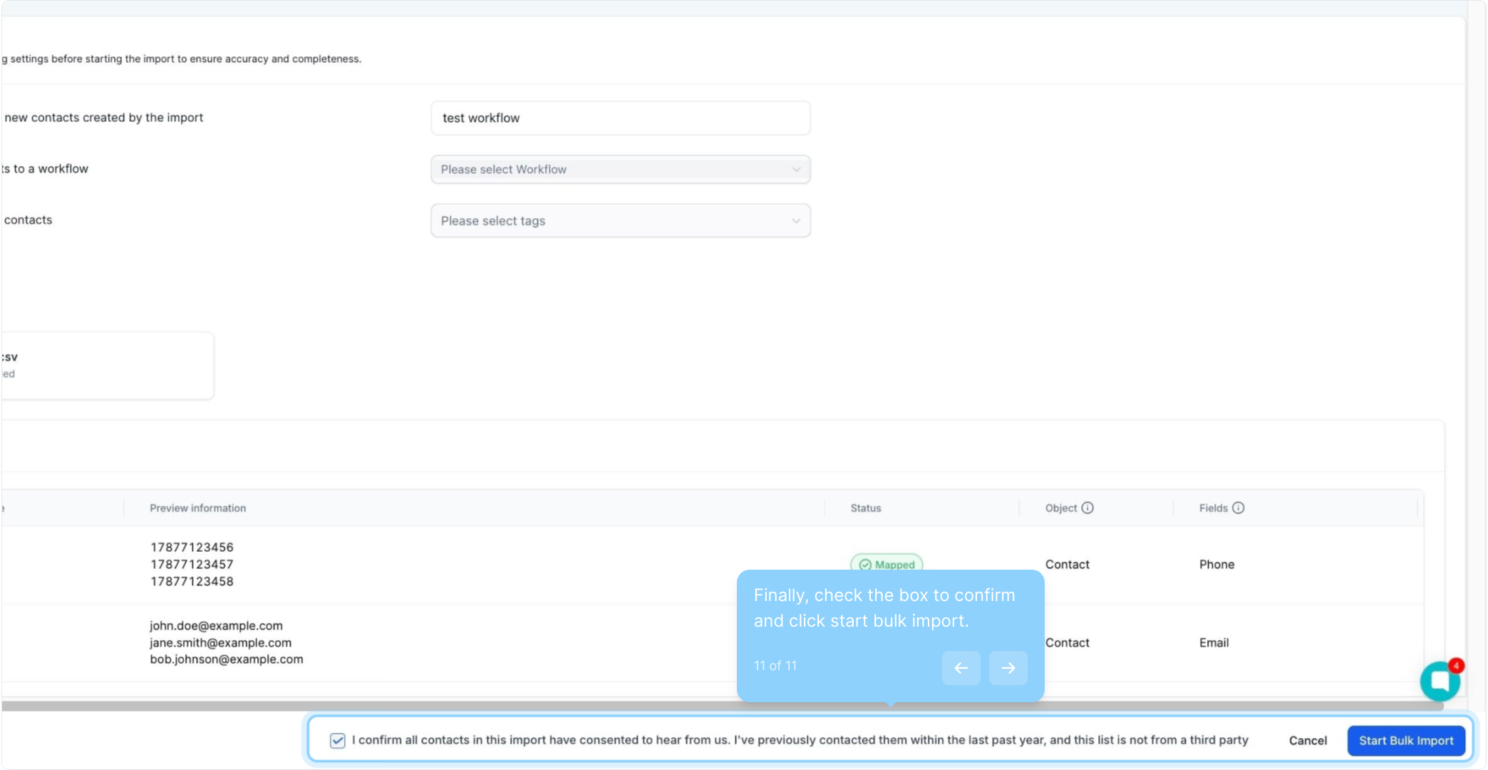 11. Finally, check the box to confirm and click start bulk import.
