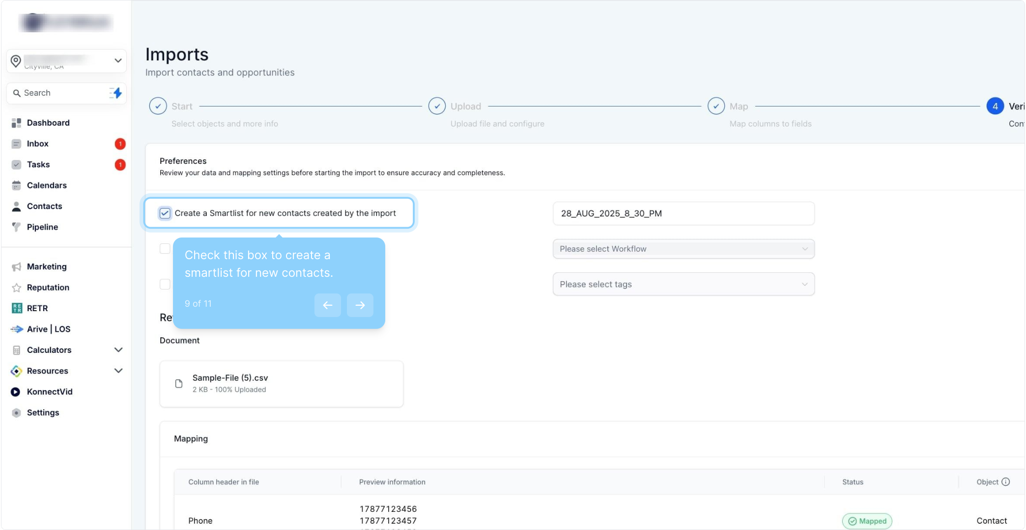 How to Add Contacts to a Smart List During Import | Konnectd
