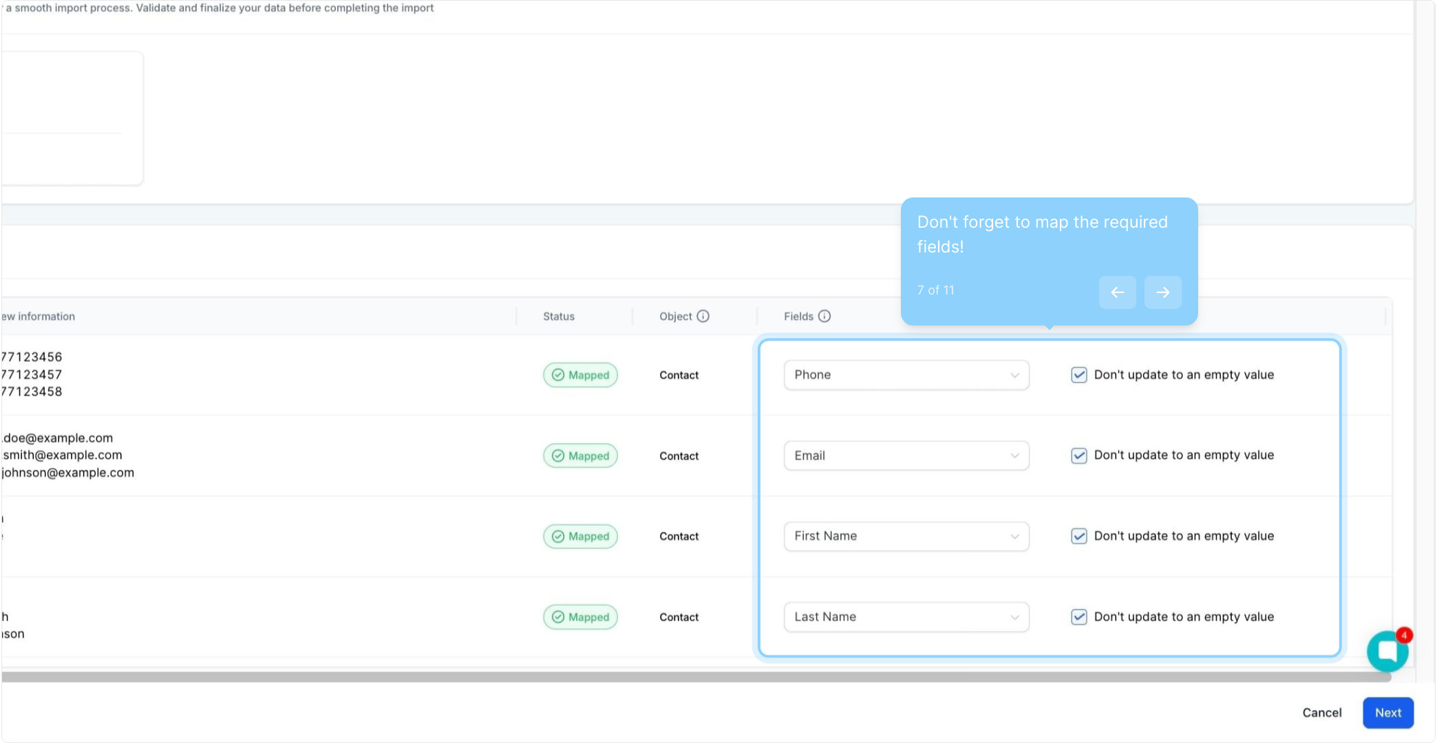 7. Don't forget to map the required fields!
