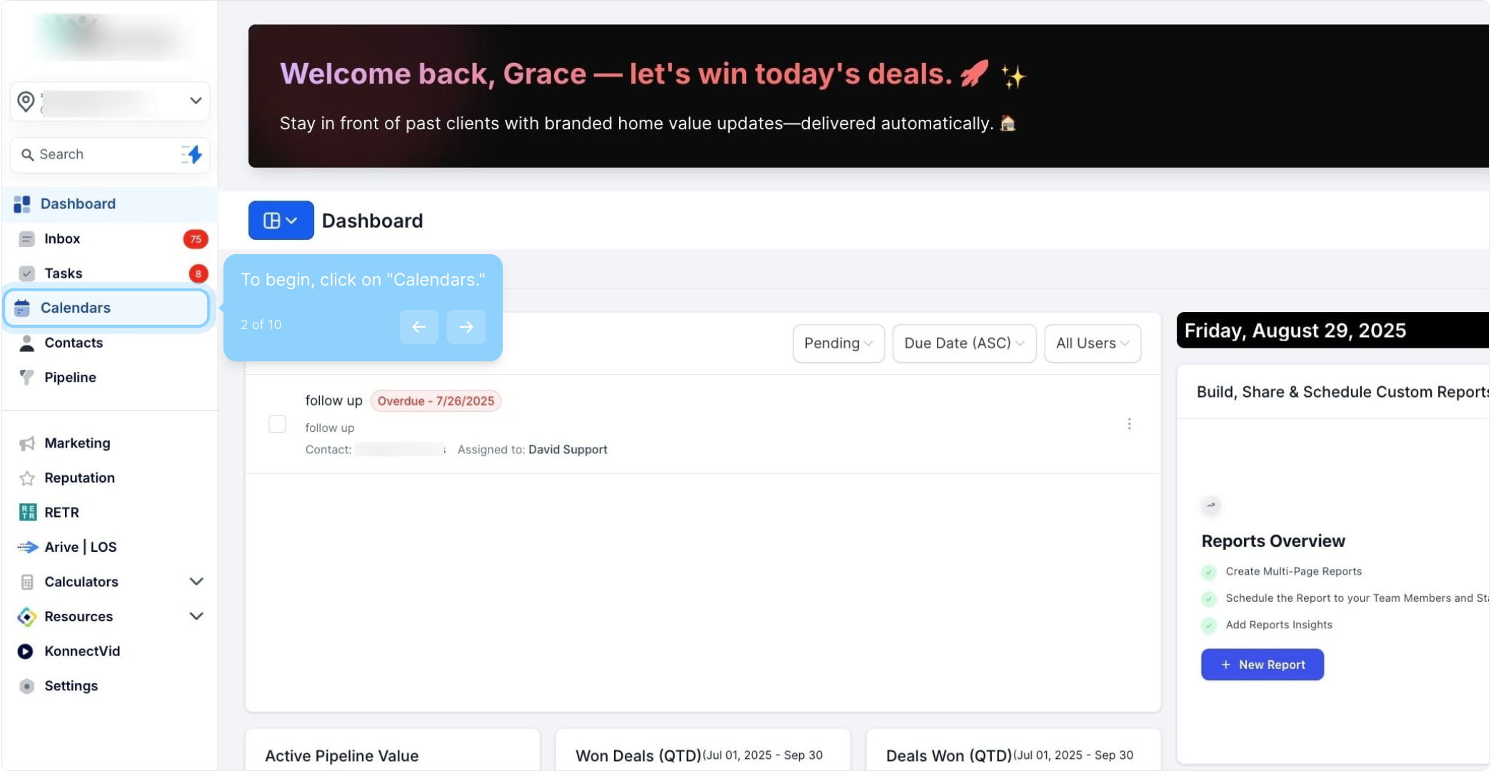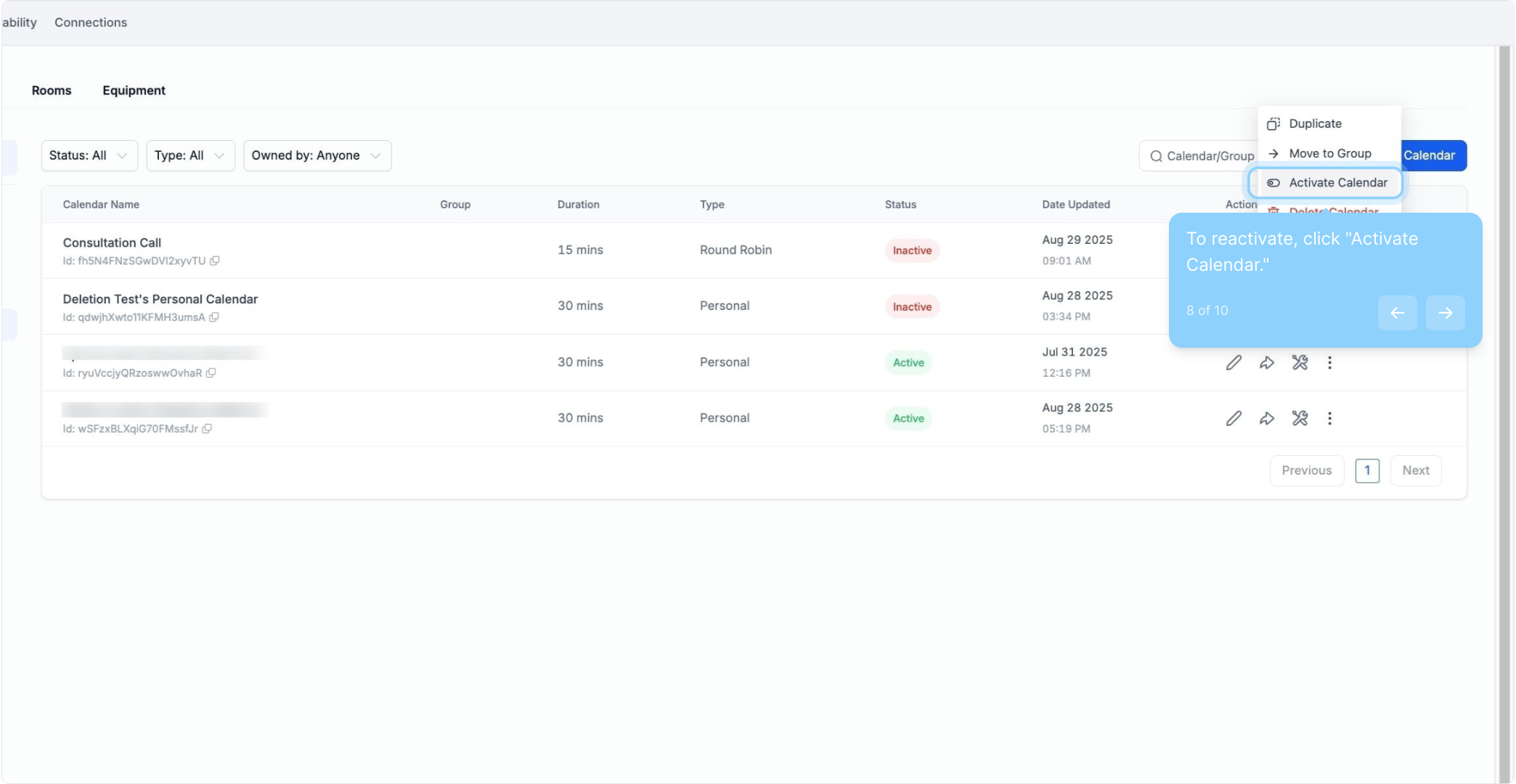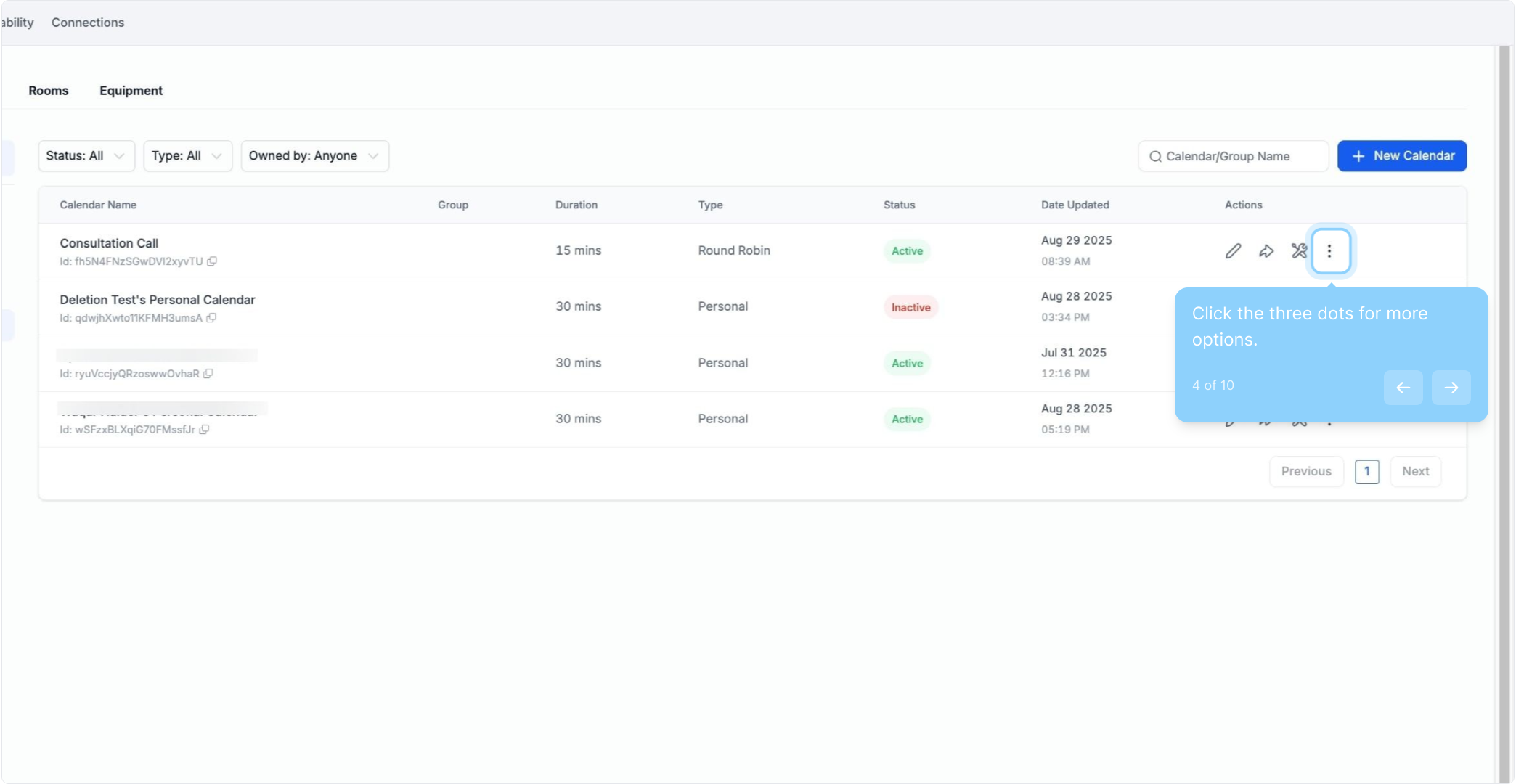 Click the 3-dot dropdown menu for the calendar you want to reactivate.