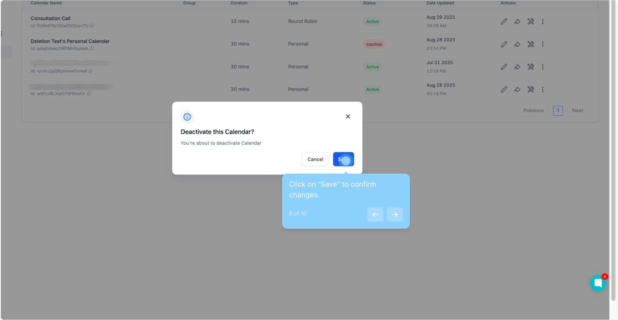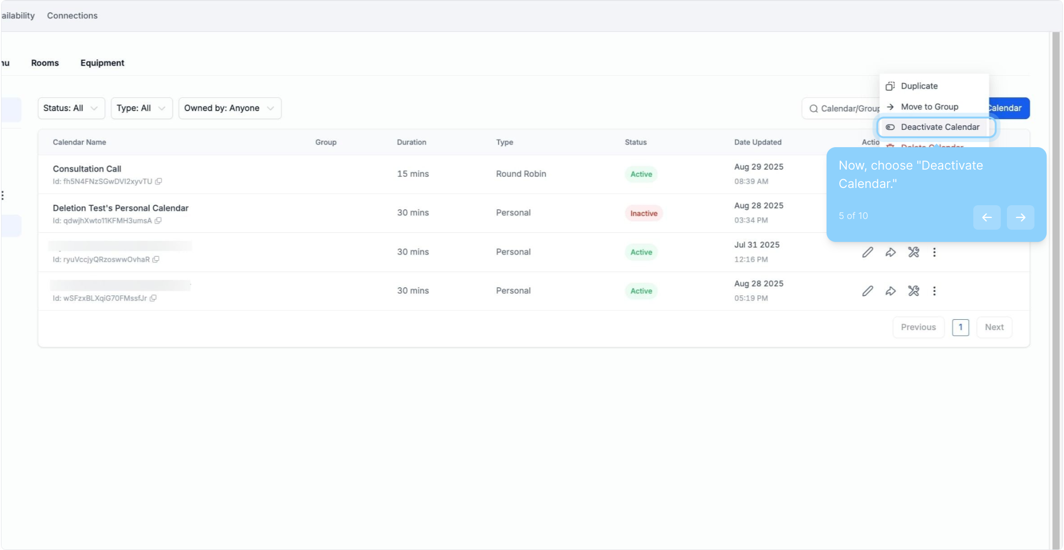 Learn how to temporarily deactivate a calendar service (e.g., a 30-minute consultation or demo) instead of deleting it.