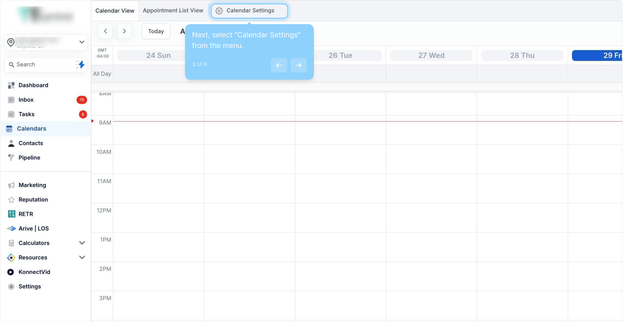 3. Next, select "Calendar Settings" from the menu.