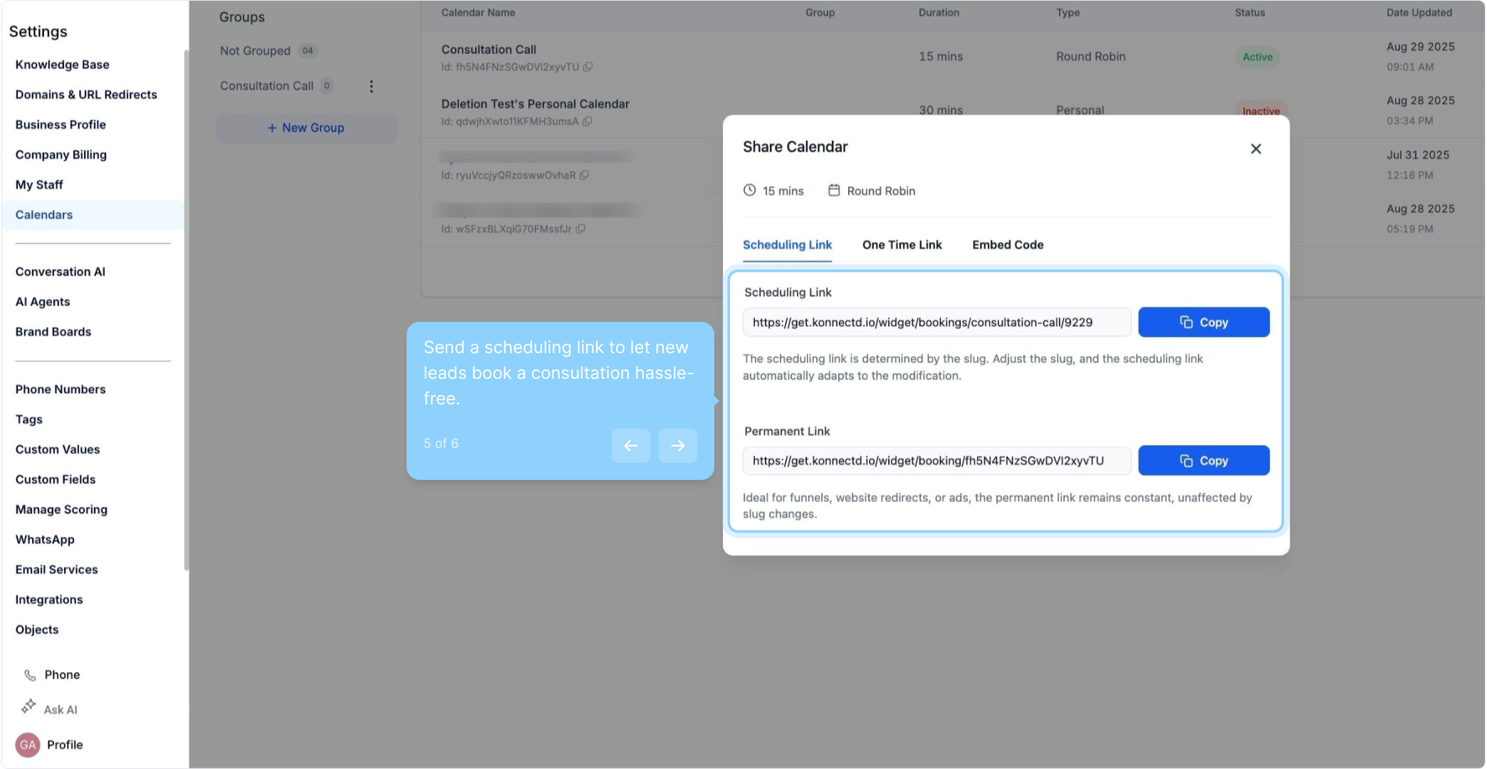 5. Send a scheduling link to let new leads book a consultation hassle-free.