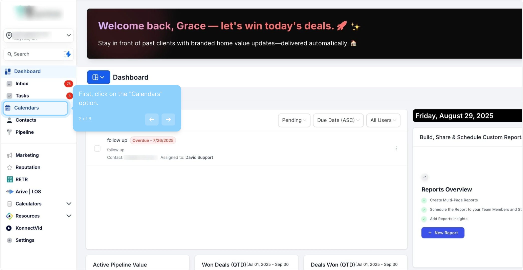2. First, click on the "Calendars" option.