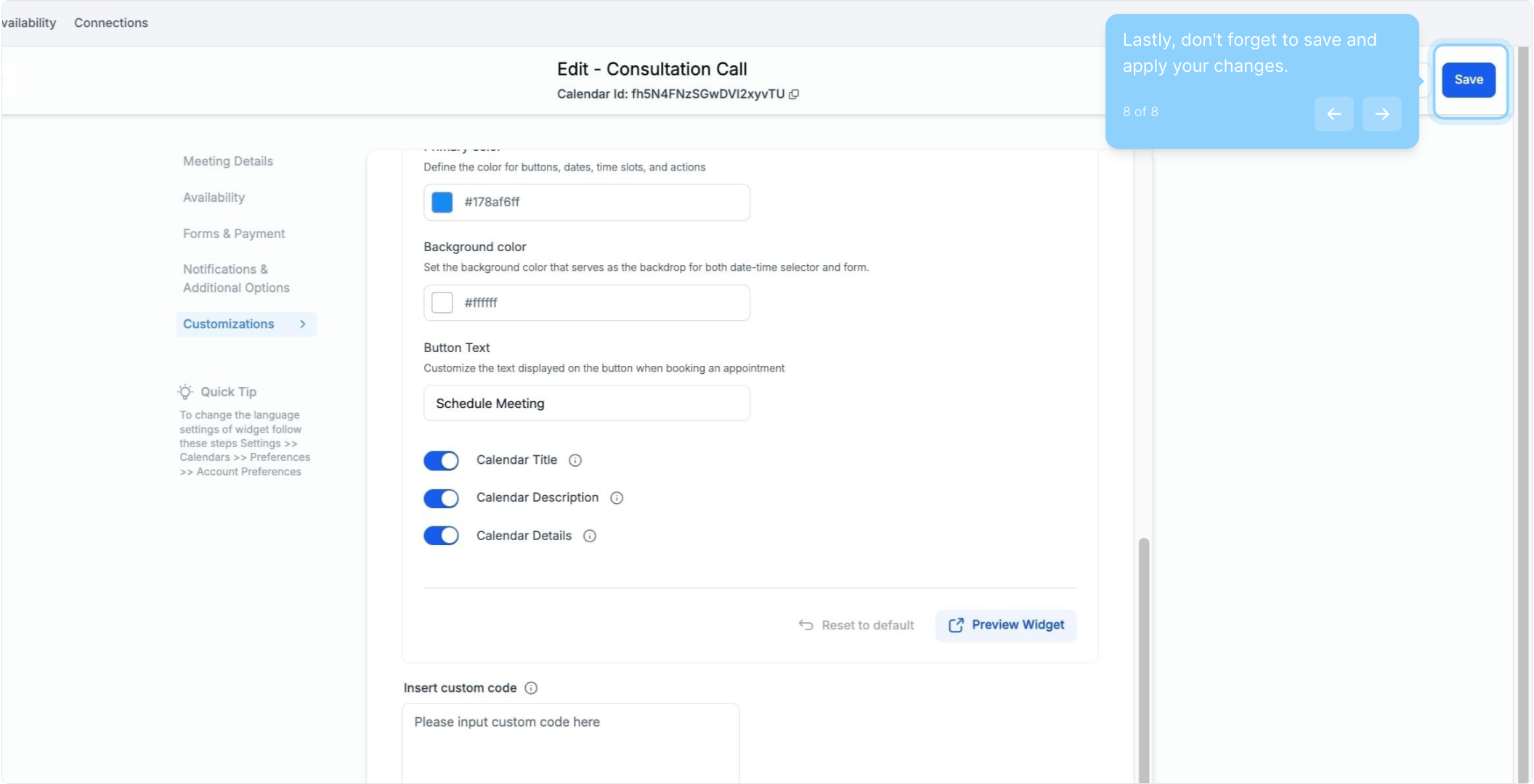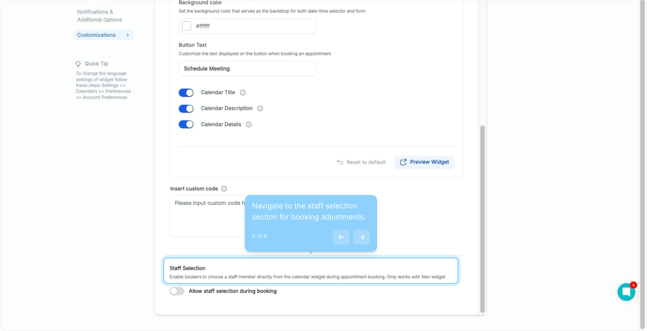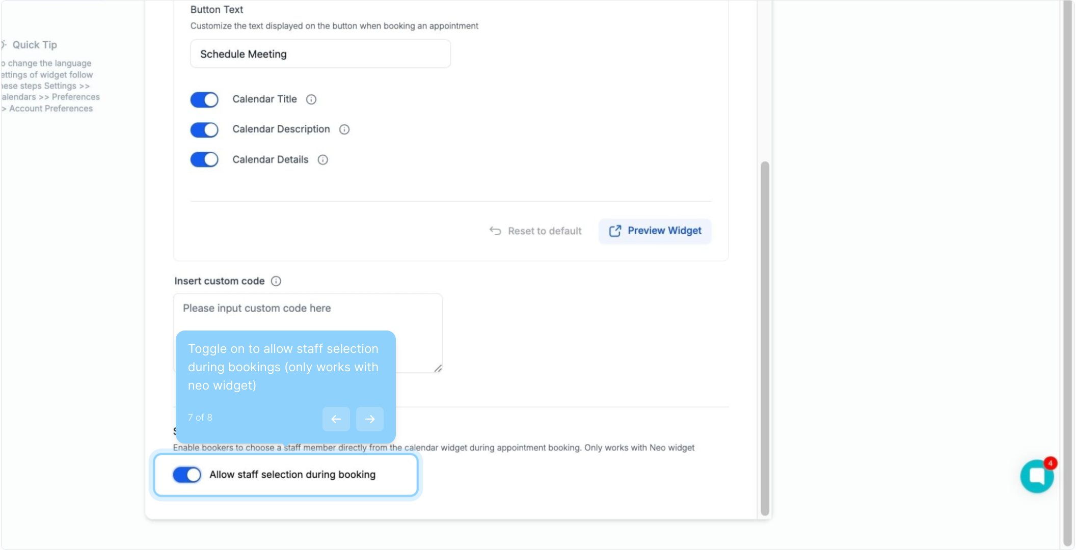 7. Toggle on to allow staff selection during bookings (only works with neo widget)