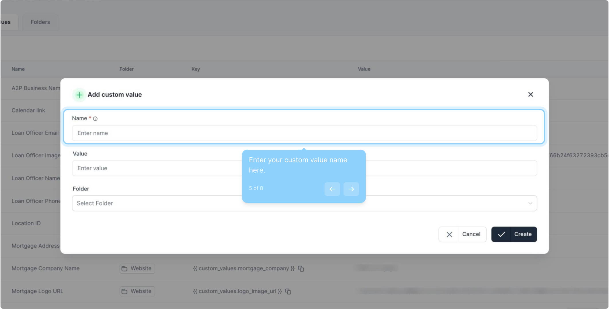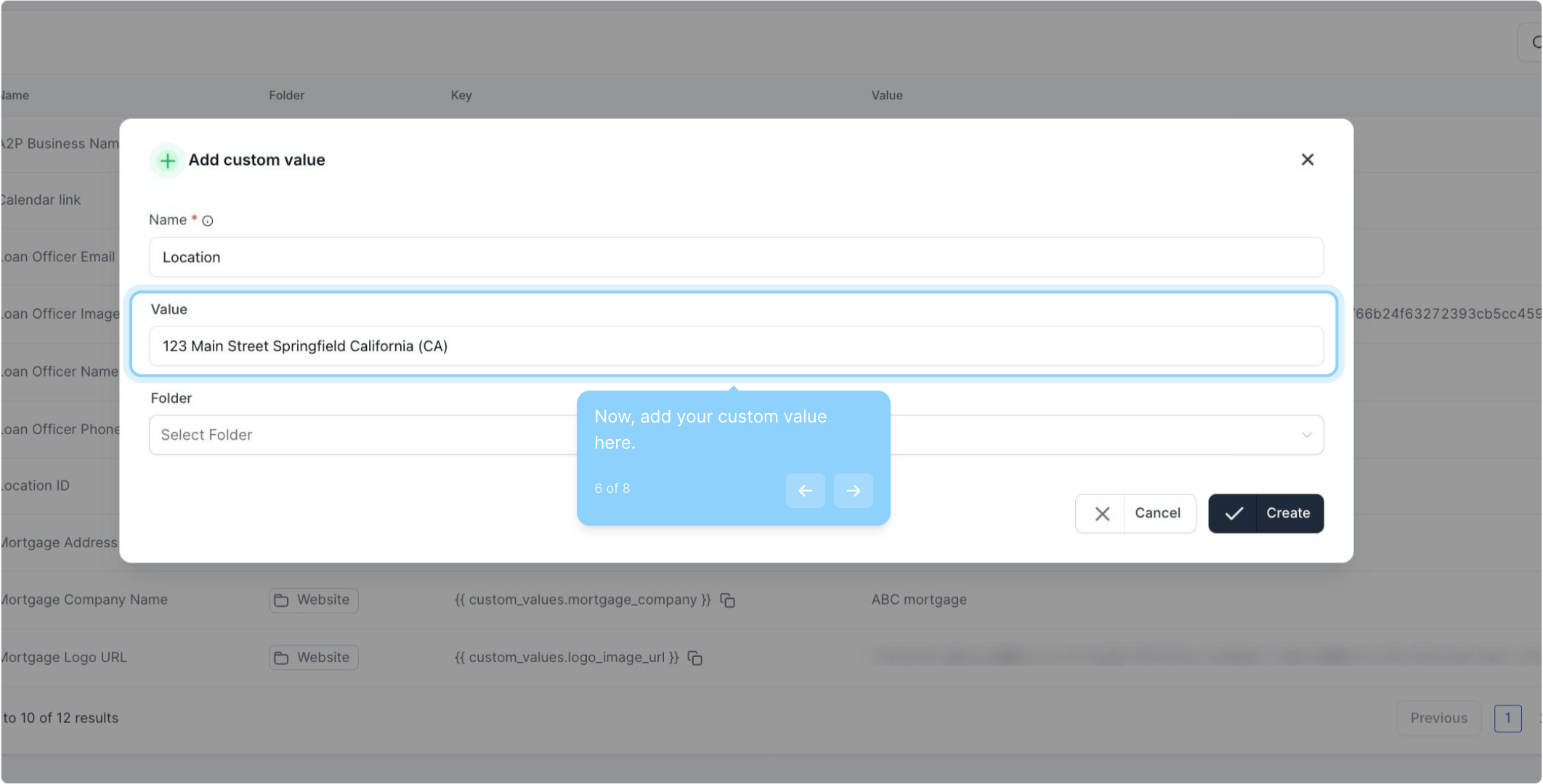 5. Enter your custom value name here.