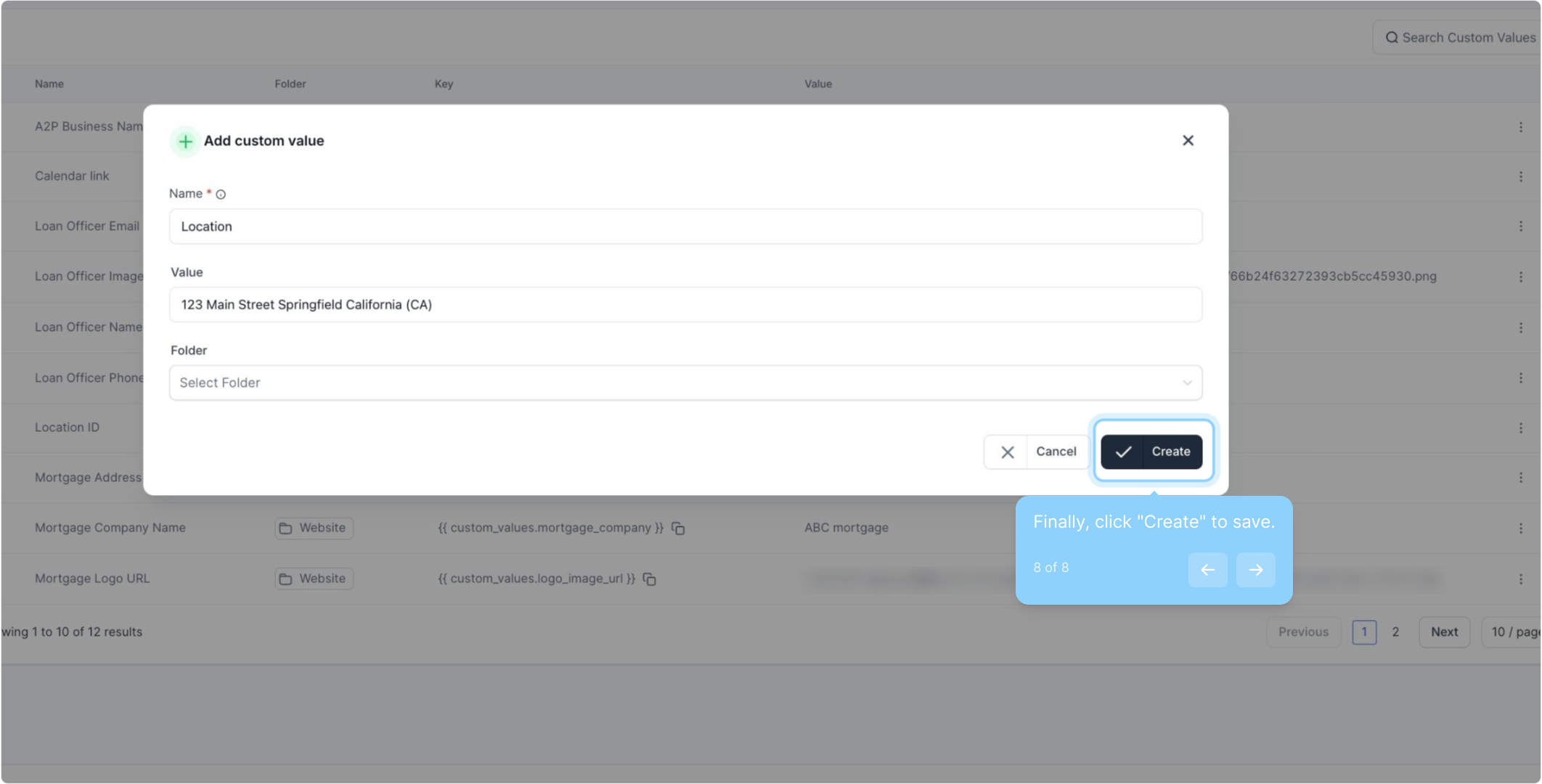 8. Finally, click "Create" to save.