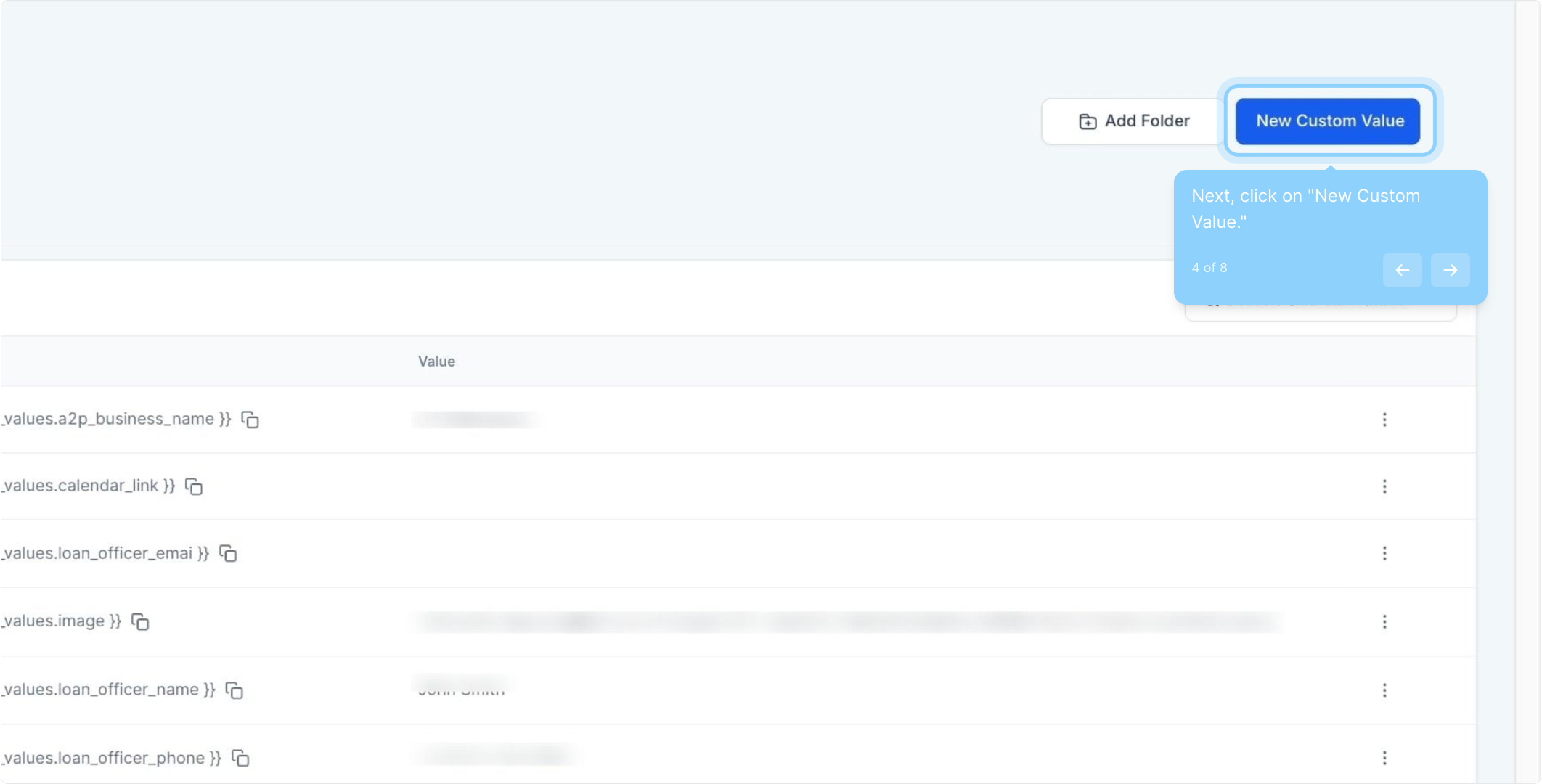 4. Next, click on "New Custom Value."