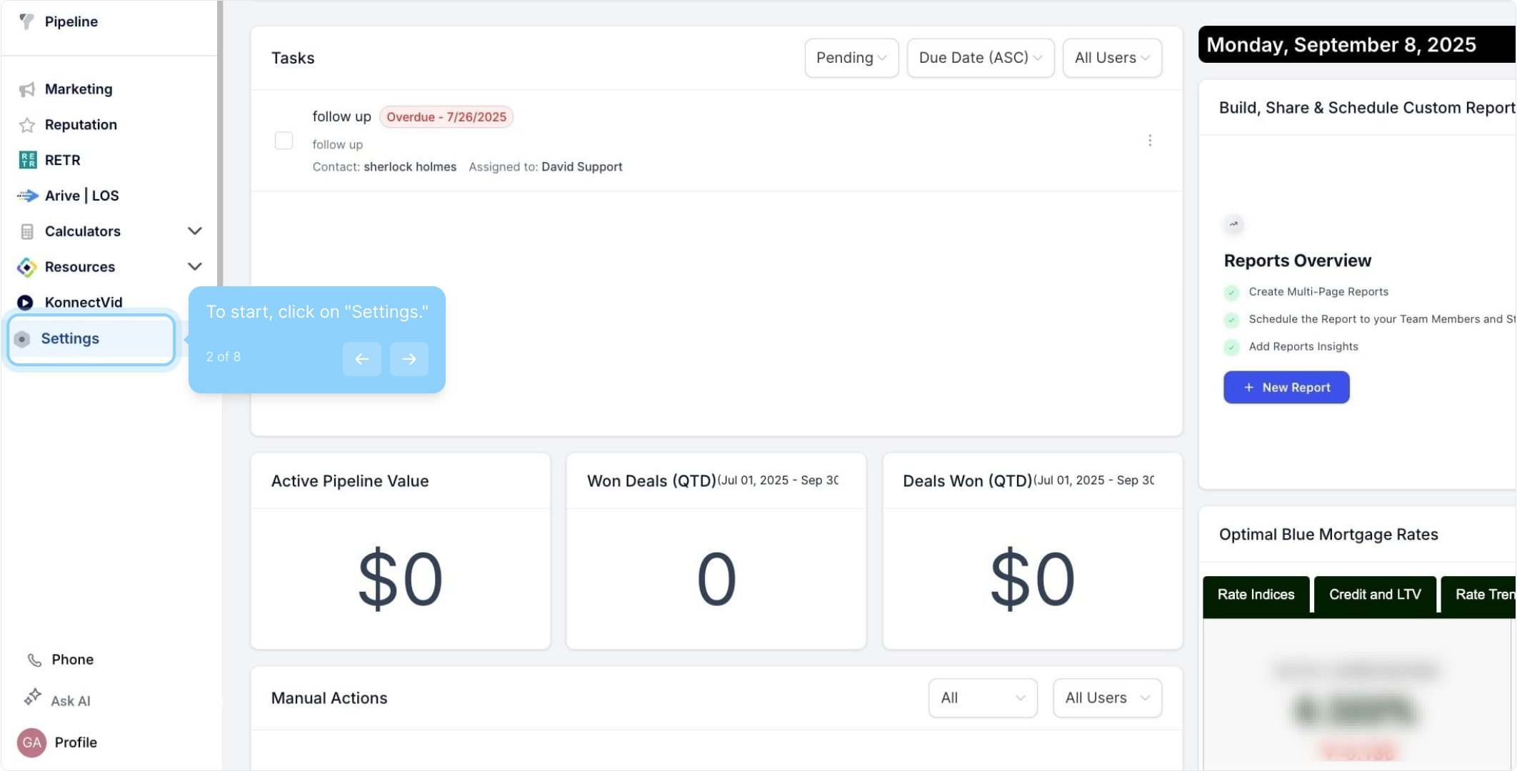 2. To start, click on "Settings."