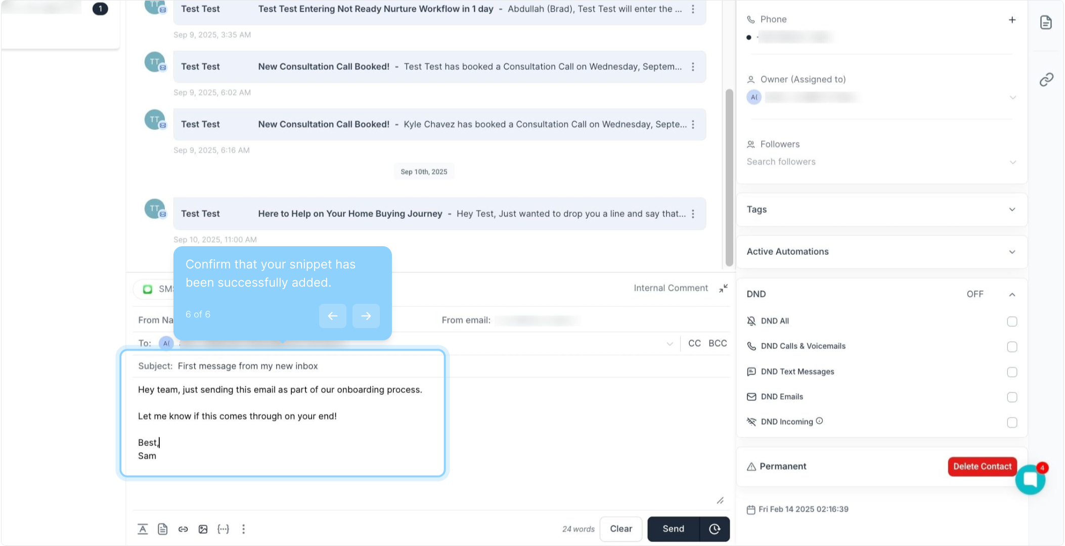 6. Confirm that your snippet has been successfully added.