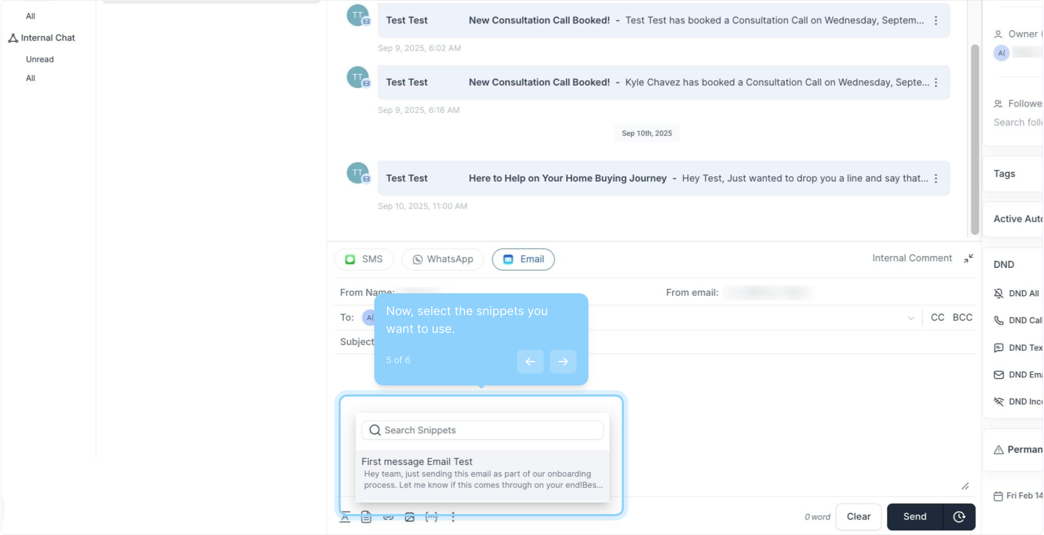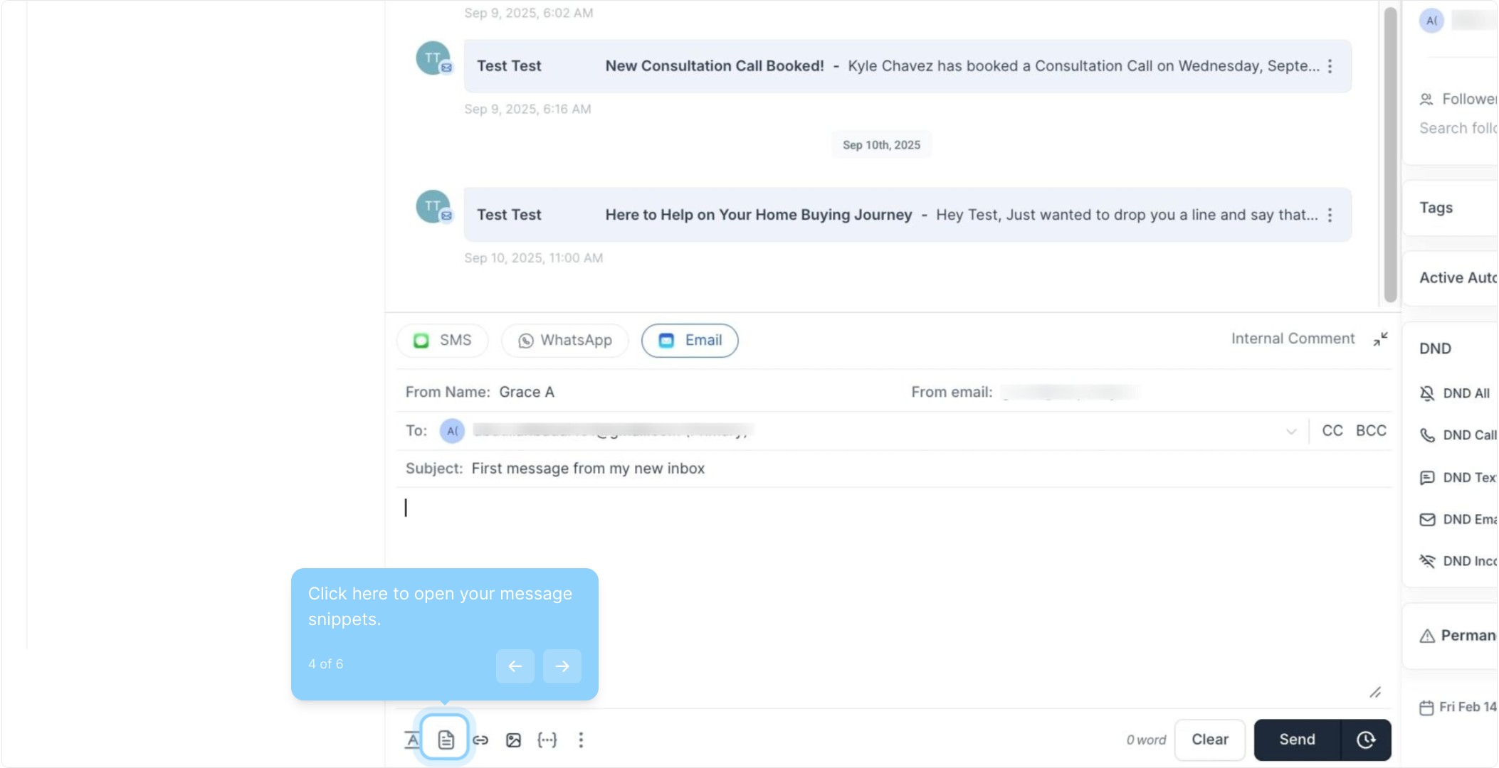 4. Click here to open your message snippets.