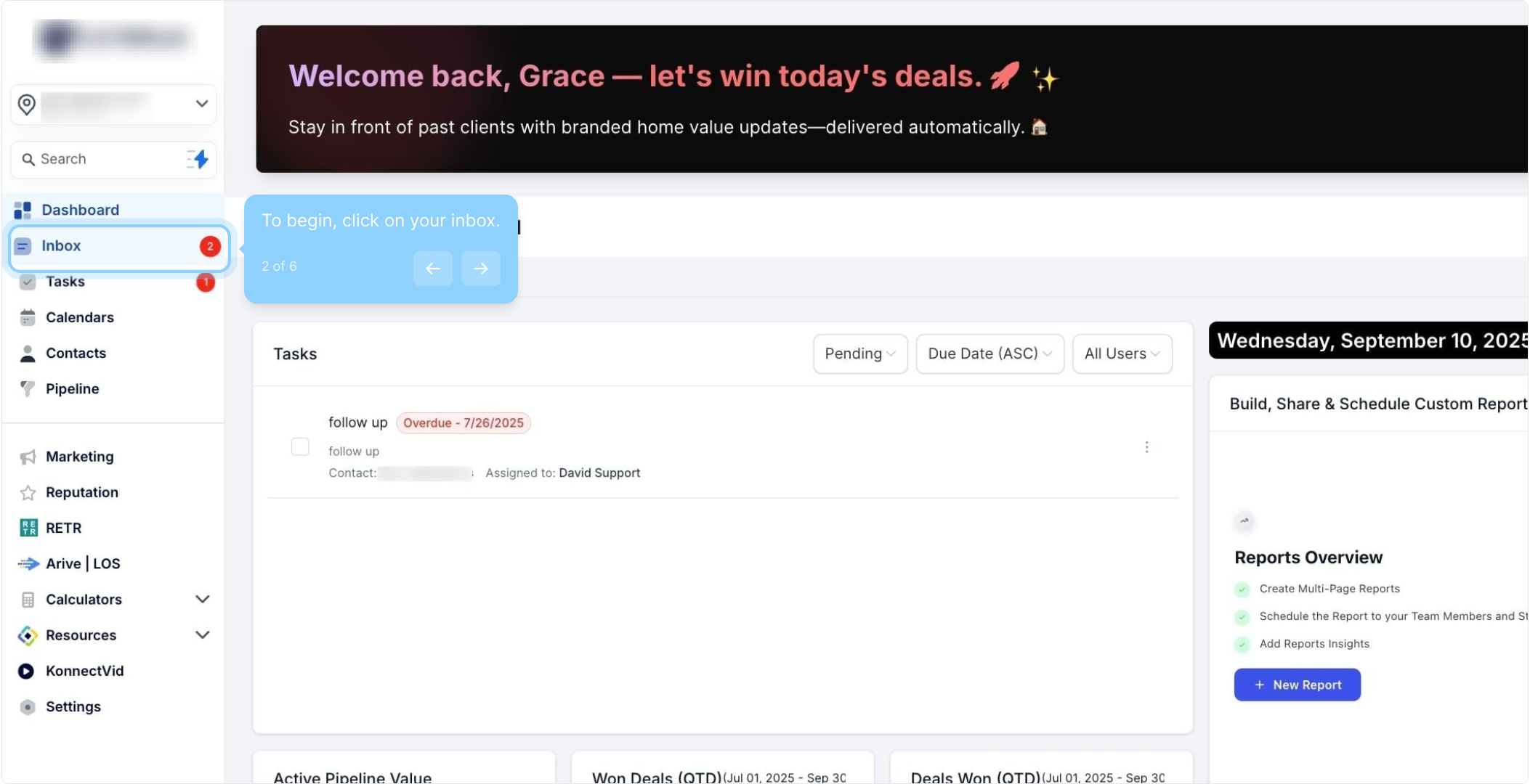 2. To begin, click on your inbox.