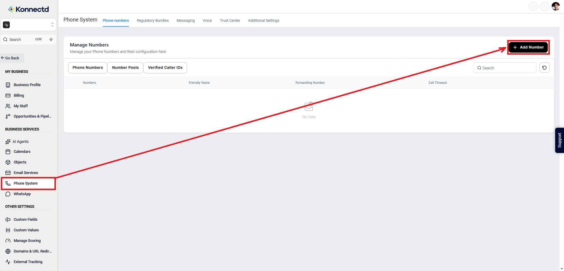 Settings > Phone System > Add Number
