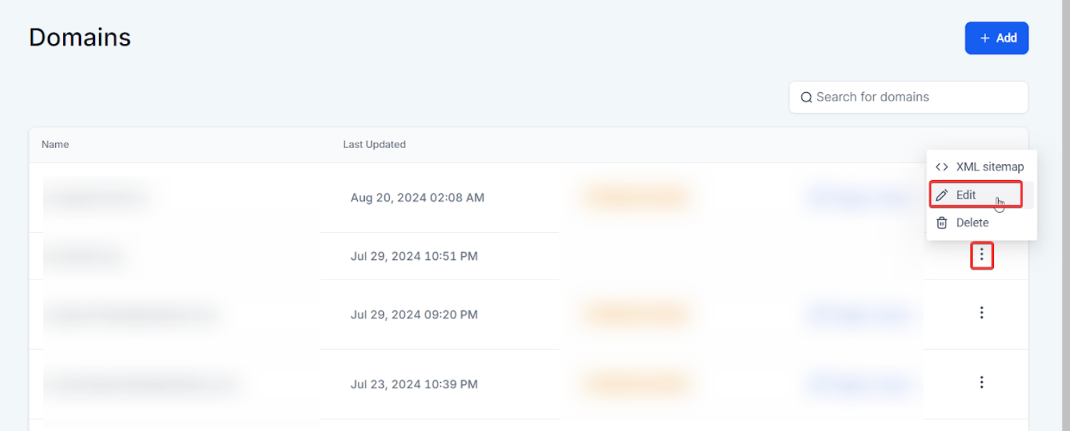Navigate to Settings > Domains.