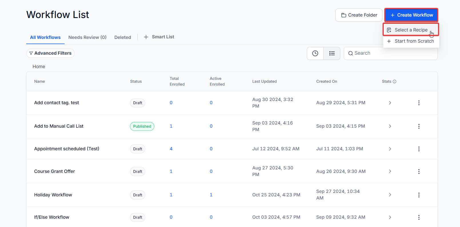 Recipe for WhatsApp Delivery Status: Use the WhatsApp Delivery Status recipe to get started with workflows.